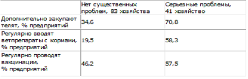 * Критерием группировки хозяйств была оценка самими фермерами положения с респираторными инфекциями телят на их предприятиях в 2004 году