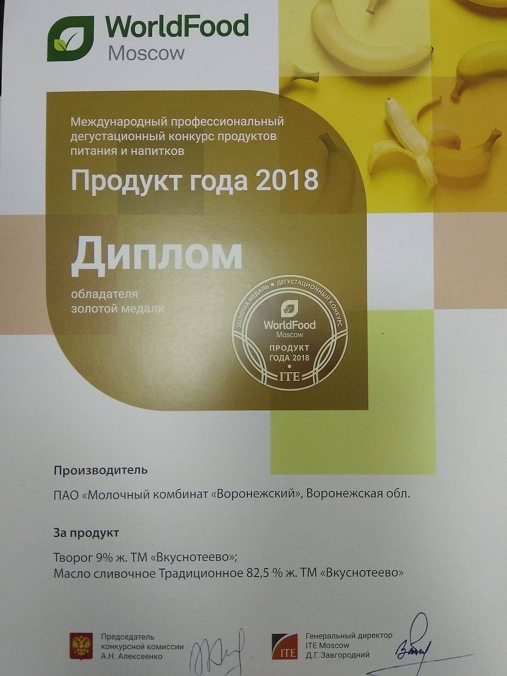 Творог и масло марки «Вкуснотеево» снова получили высшие награды на международной выставке World Food в Москве