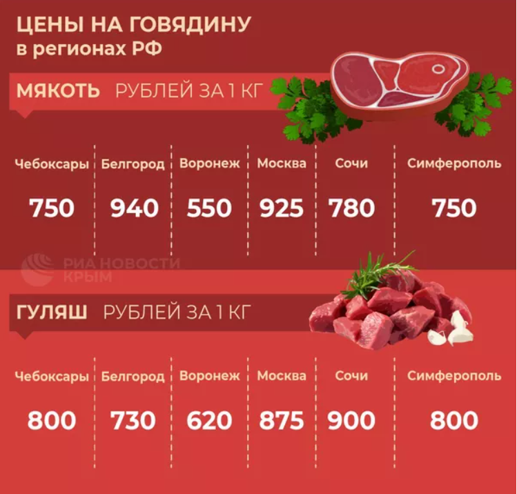 Стоимость говядины в регионах России и в Крыму