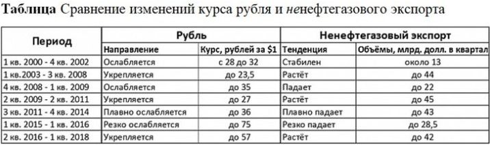С 2000 по 2018 гг. можно выделить семь периодов ослабления и укрепления рубля, которые для удобства сведены в таблицу.