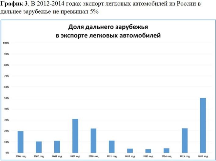 Лишь в 2016 г. впервые за много лет экспорт легковых автомобилей в дальнее зарубежье сравнялся в долларовом выражении с экспортом в СНГ.
