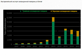 В период с 2014 по 2016 год Австралия была единственным импортным поставщиком говядины в Китай, предлагающим уникальную возможность для развития рынка. В то же время ограниченное количество холодильных складов и заводов, одобренных для экспорта охлажденной говядины, является препятствием для увеличения объемов поставок.