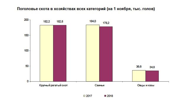 Согласно опубликованным данным Петростата, поголовье крупного рогатого скота на 1 ноября 2018 года по отношению к данным за 2017 год в процентном выражении составило 100,3%.