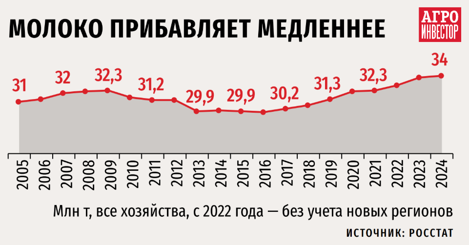 20 лет назад необходимо было снизить зависимость от импортной продукции, кроме того, животноводство является локомотивом смежных цепочек, вторит ему Виноградов. «Животноводство формирует спрос на корма, предполагает развитие растениеводства и дает больший потенциал роста сельхозпроизводства, чем просто цель по наращиванию экспорта зерна, — комментирует он. — Сейчас, спустя 20 лет, видно, что “мясная” часть стратегии сработала быстрее и устойчивее, тогда как молочное направление оказалось более инерционным из-за длинного цикла, необходимости параллельно развивать генетику, кормовую базу, переработку и управлять биорисками».