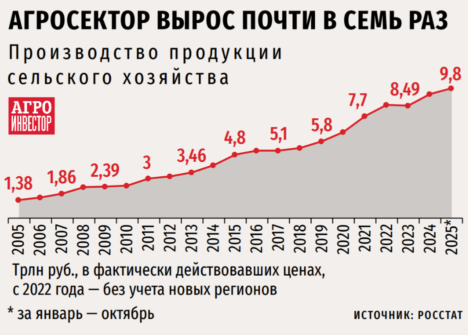 На долю российского АПК приходится около 4,5% ВВП страны, в 2025 году сельское хозяйство во многом шло по траектории, заданной общеэкономическими трендами и проблемами предыдущих лет, обращает внимание директор по аналитике «Инго Банка» Василий Кутьин. Аграриям пришлось работать в условиях резко подорожавших заемных средств, значительно возросших затрат на материально-технические ресурсы и снижения цен на сельхозпродукцию, ограниченных возможностей для экспорта, поиска новых источников финансирования.