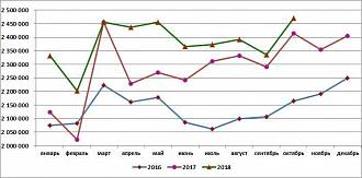 За период с января 2016 г. минимальный объём производства комбикормов в нашей стране зафиксирован в феврале 2017 года - 2022,6 тыс.тонн, обращает внимание SoyaNews. Максимальным стал объём производства октября 2018 г. - 2471,0 тыс.тонн.