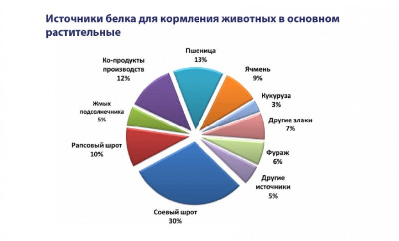 Что касается источников белка в кормах сельскохозяйственных животных, то здесь преобладают растительное сырье.