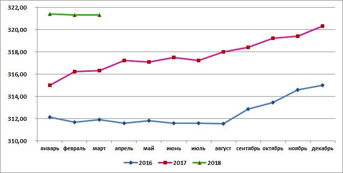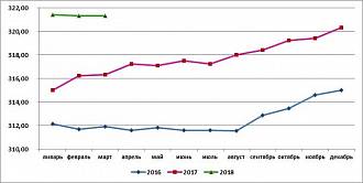 В марте 2018 г. говядина (кроме бескостного мяса) в России стоила в среднем 321,34 руб./кг - ровно столько же, как в предыдущем месяце, и на 1,6% больше, чем в марте 2017 г. С начала года цена данного товара уменьшилась на 0,02%.