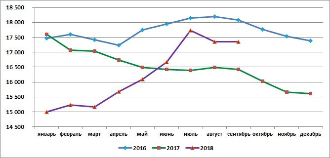 Средняя цена на комбикорма в нашей стране в сентябре 2018 г. установилась на уровне 16,1 тыс.руб./т - это на 1,0% больше, чем в предыдущем месяце, и на 6,9% больше, чем в сентябре 2017 года. С начала года цена выросла на 16,9%.