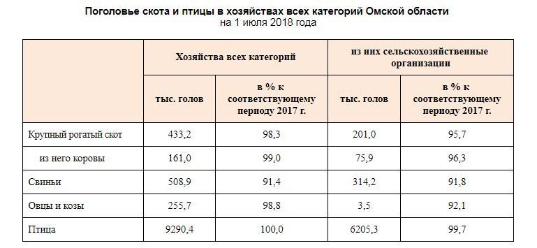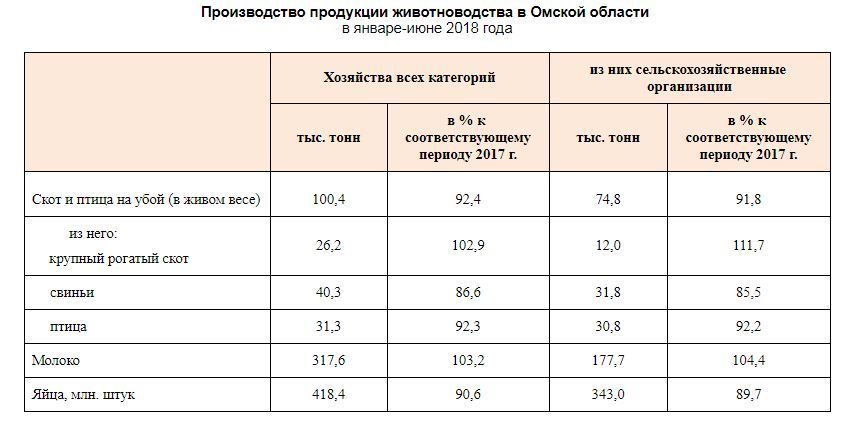 В Омскстате подвели итоги производства продукции животноводства в Омской области за январь – июнь 2018 года. В хозяйствах всех категорий в сравнении с аналогичным периодом 2017 года производство молока увеличилось на 9,7 тыс. тонн. Объемы производства скота и птицы на убой сократились на 8,2 тыс. тонн, яиц - на 43,4 млн штук.