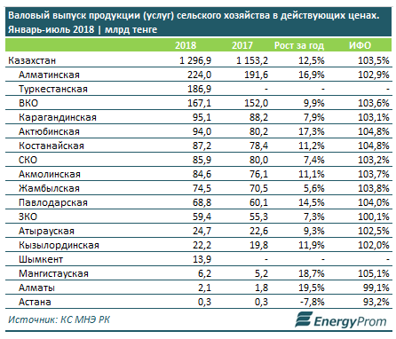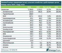 По итогам 7 месяцев валовый выпуск продукции сельского хозяйства достиг 1,3 триллиона тенге - на 12,5% больше, чем годом ранее, передает energyprom.kz.