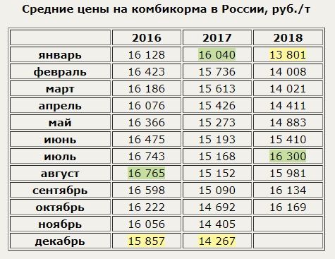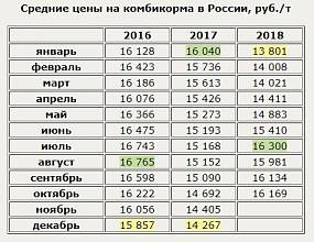 Средняя цена на комбикорма в нашей стране в октябре 2018 г. установилась на уровне 16,2 тыс. руб./т - это на 0,2% больше, чем в предыдущем месяце, и на 10,1% больше, чем в октябре 2017 года. С начала года цена выросла на 17,2%.