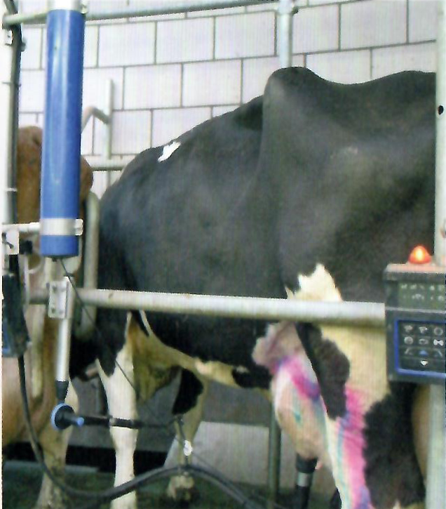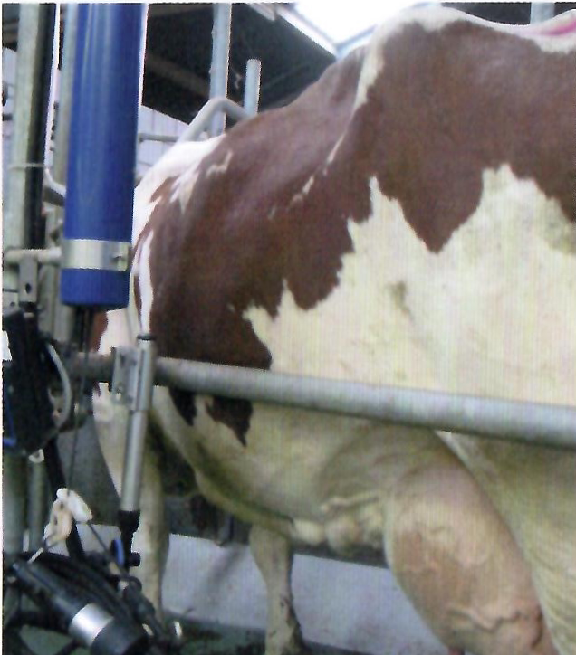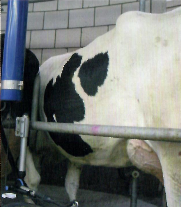 Когда корова стоит спокойно, а оператор доения находится с левой стороны, ему удобно проводить проверку наполненности рубца. Постоянно практикуясь, вы сможете научиться получать наглядное представление о состоянии животного независимо от того, где размещаетесь, слева или справа от коровы. Между доильными залами существуют значительные различия относительно условий для визуальной оценки коров. В зависимости от длительности дойки рубцы последних коров не будут столь же полными, как у первых коров. В доильном зале можно получить хорошее представление об объеме рубца, что характеризуется его содержимым и толщиной прослойки из клетчатки.